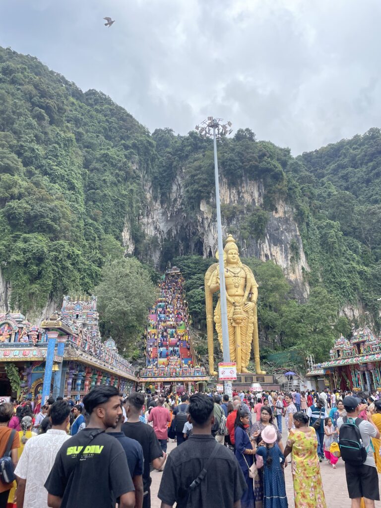 カラフルな階段と巨大な黄金の像が印象的で、KL観光では外せない場所です。