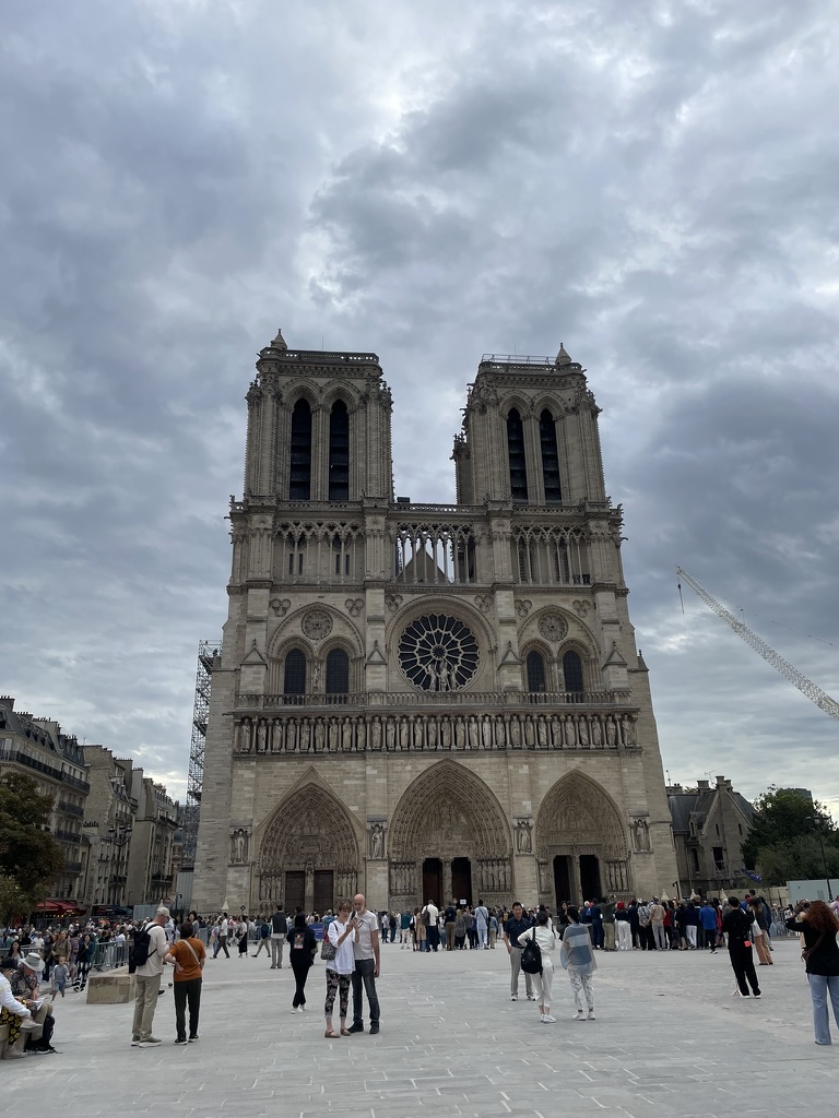 4日目はノートルダム大聖堂の見学からスタートしました。入場予約は2日前から開始されますが、公式サイトで予約をしようとすると、すぐスロットがいっぱいになっていました。こまめに確認してると空きが出てたのでたまたま予約することができました。予約していない人の列もありましたが、結構並んでいたのでできれば予約したほうがいいと思います。