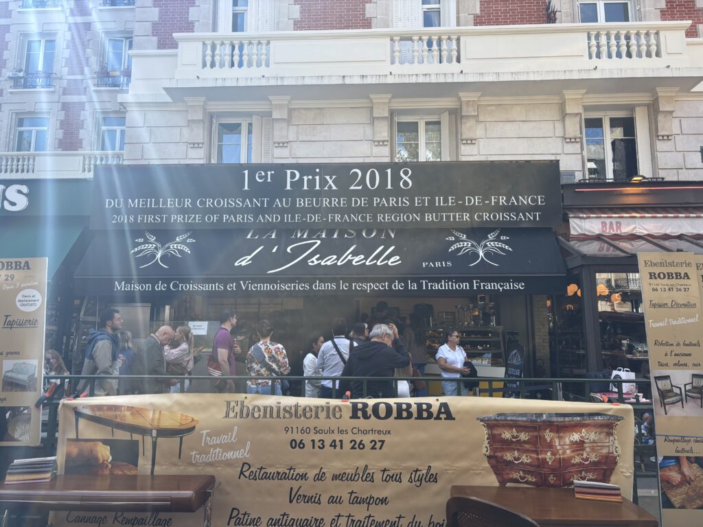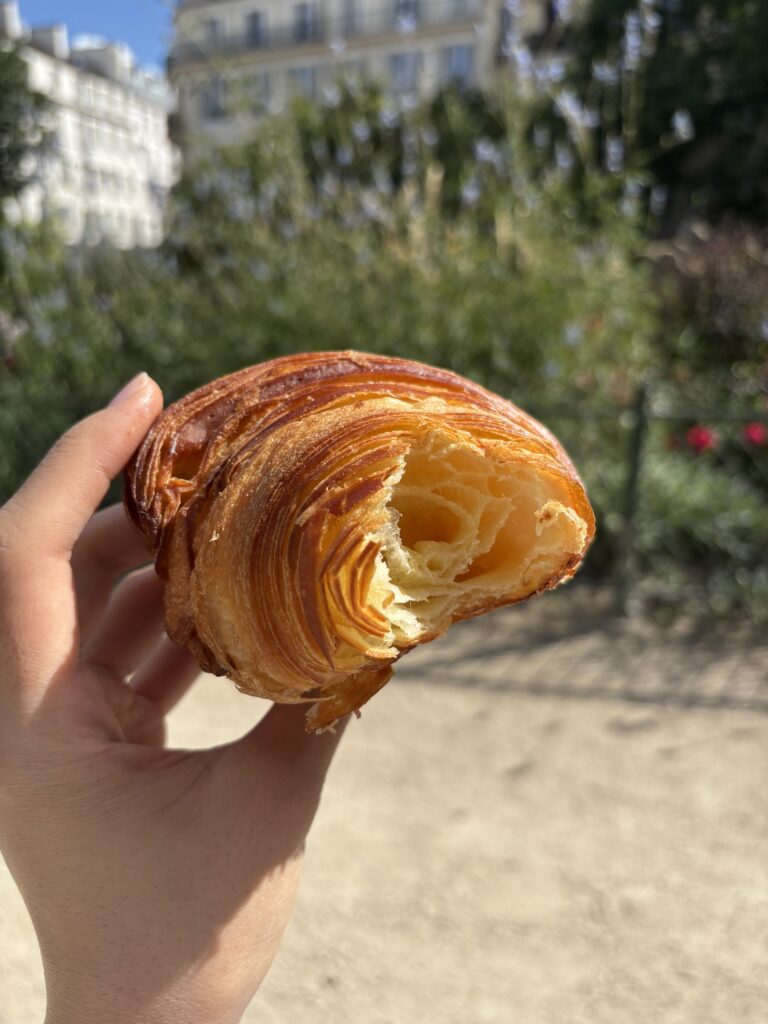 モンマルトルの丘を散歩した後は、電車に乗って、La Maison d’Isabelleというパン屋さんでクロワッサン買って近くの公園でお昼ご飯を食べました。このパン屋さんは毎年開催されているクロワッサンコンクールで優勝したことがあるお店だそうです。12時ごろ行きましたが店には行列ができていました、回転は早いのでそこまで待つことはないです。肝心な味ですが、まず外側がパリパリで中がもっちり、そしてバターの香りがいい匂い。今まで食べたクロワッサンで一番美味しかったです。なんなら今回のパリ旅行で食べたもので一番美味しかったです。