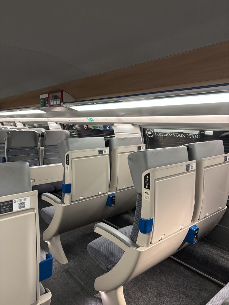 初めてTGVに乗りましたが非常に快適でした。車内は寒すぎず暑すぎずで半袖でちょうどよかったです。Wi-Fiもありましたが特に接続しなかったです、またコンセントがあったので充電もできました。