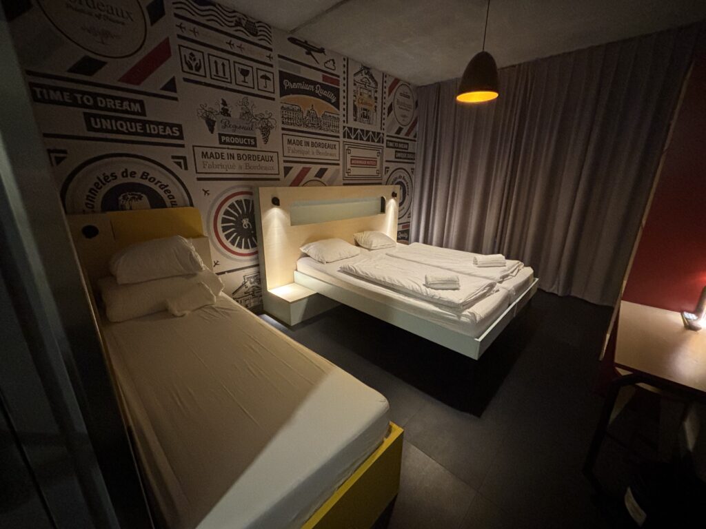 夜遅かったのでこの日は特に観光せず、駅近の予約したホテル MEININGER Hotel Bordeaux Gare Saint-Jean ですぐに就寝しました。このホテルですが、冷蔵庫がない点と洗面所から下水のような匂いがした点がマイナスですが、それ以外は料金を含めいいホテルでした。1泊1人5,000円くらいです。